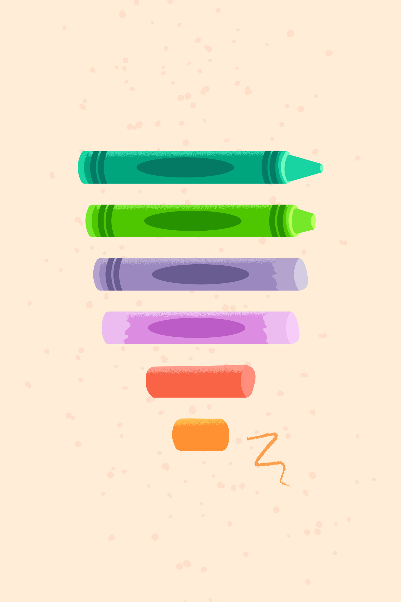 Experimental illustration of crayons done in Illustrator for a greeting card concept.