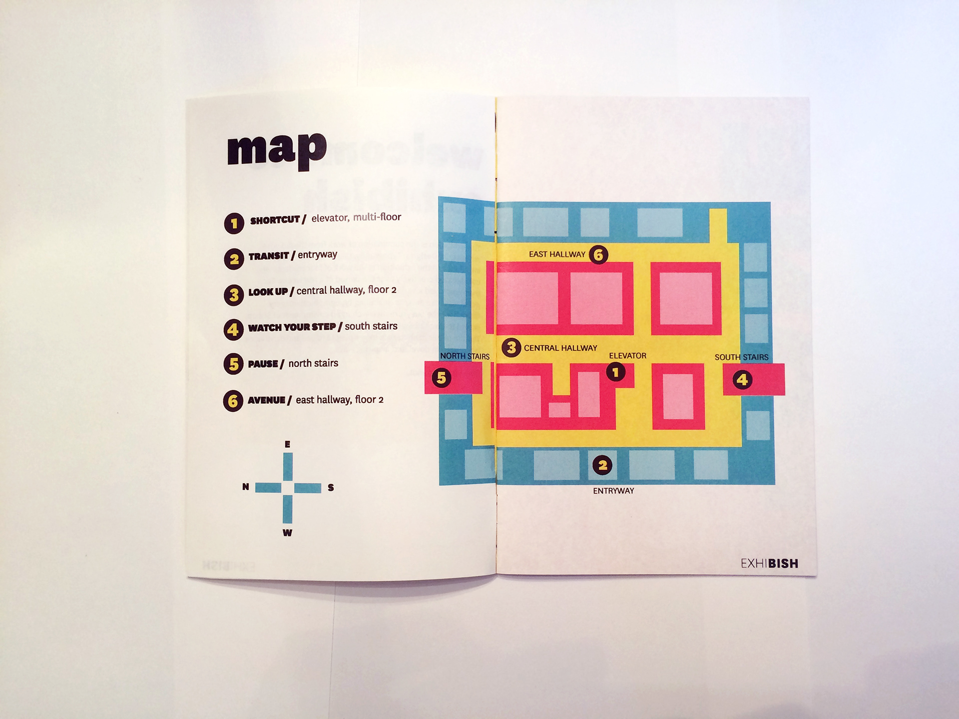 The final project of my Typography class in 2016 was a collaborative environmental design effort. The class worked in groups to install typographic visuals around the interior of our building (Bishop), and secondary groups created a visual brand identity for the entire installation. I was tasked with creating a map; I maintained the designated rectangle motif and primary color scheme in my design.